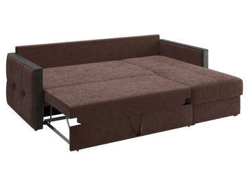 Угловой диван Эгида станет уютным местом отдыха в гостиной или квартире-студии. Узкие подлокотники с накладками можно использовать в качестве подставки для пульта или смартфона, а приспинные подушки — для регулировки глубины посадки. Со всех сторон дивана используется основная ткань, поэтому его можно использовать для зонирования комнаты. В разложенном виде модель образует комфортное спальное место с небольшой спинкой, которая защищает от соприкосновения со стеной. Для постельных принадлежностей предусмотрен специальный бельевой короб.<br>