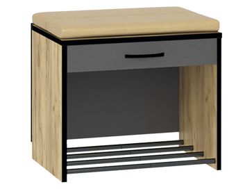 Обувница Ольга Лофт в лаконичном исполнении удачно дополнит интерьер прихожей. Сиденье с мягкой обивкой обеспечит особое удобство. Для обуви предусмотрена полочка в виде металлических перекладин, а выдвижной ящик подойдет для хранения различных мелочей.<br>