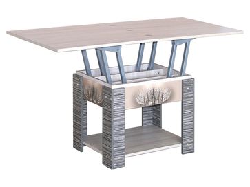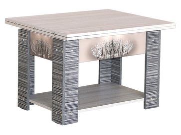 Журнальный столик-трансформер Шерман станет ярким акцентом в интерьере современной гостиной. Соединительные планки и опоры декорированы стильным и оригинальным принтом. Модель легко превращается в обеденный стол с достаточным для семьи или небольшой компании количеством посадочных мест.<br>