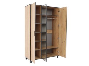 Распашной шкаф Лофт в минималистичном исполнении гармонично дополнит современный интерьер. Внутреннее наполнение включает штангу для плечиков и множество ниш для компактного хранения одежды и обуви. Центральный фасад представляет собой зеркало в полный рост, которое позволит оценить подобранный образ.<br>