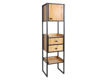 Стеллаж Берген удачно дополнит современный офисный или домашний интерьер. Модель предоставит дополнительное место для бумаг, канцелярских принадлежностей и различных мелочей. Система хранения включает выдвижные ящики, полки и отделение за распашной дверцей.<br>