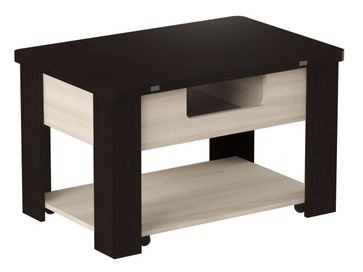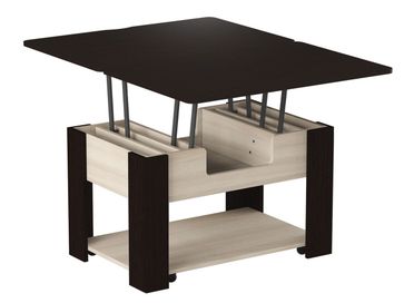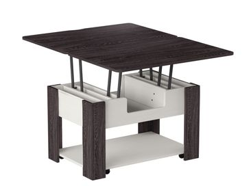 Оригинальный журнальный столик-трансформер Стэп на устойчивых массивных ножках. За опорами спрятаны колесики для легкого перемещения столика по комнате.</br> С помощью надежного технологического механизма модель быстро превращается из компактного журнального в небольшой обеденный стол. Под столешницей располагается ниша для хранения.<br>