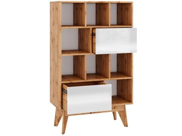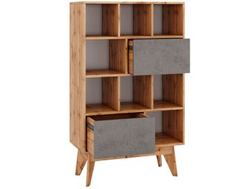 Преимущества: <br> механизм «push-to-open» — выдвижные ящики открываются путем легкого нажатия на фасад;<br> комбинированное наполнение — система хранения включает множество открытых отделений и два выдвижных ящика;<br> высокие ножки — не перегружают обстановку, позволяют удобно проводить уборку пола;<br> шариковые направляющие — позволяют ящику полностью выдвигаться, имеют плавный и бесшумный ход.<br><br>