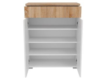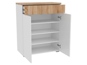 Комод Куба — компактное решение с продуманной системой хранения для создания удобного пространства прихожей. Фасады не имеют ручек и открываются легким нажатием. В выдвижном ящике найдется место для ключей, аксессуаров и других полезных мелочей, а широкие полки позволят аккуратно разместить сезонные вещи или коробки с обувью.<br>
