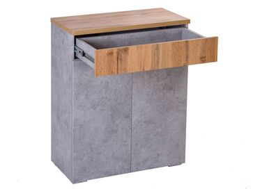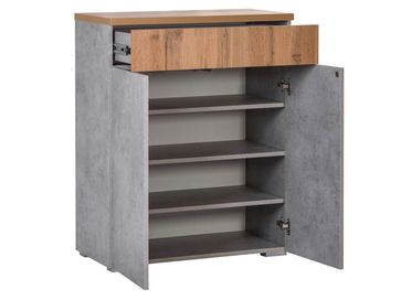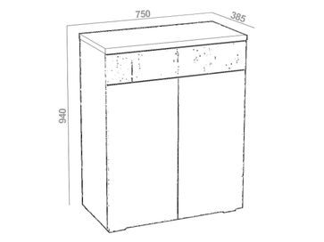 Характеристики: <br> Наполнение: три полки за дверцами, ящик.<br> Материал корпуса: ЛДСП 16 мм.<br> Материал фасада: ЛДСП 16 мм и 25 мм.<br> Механизм открывания дверок и ящика: «push-to-open».<br>