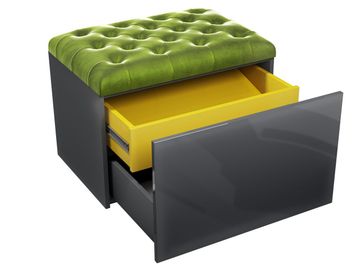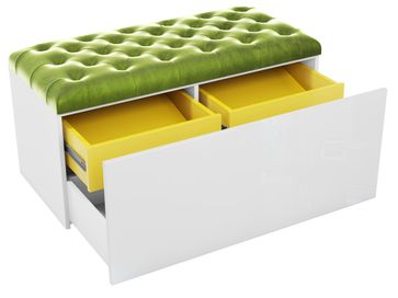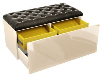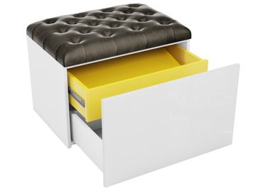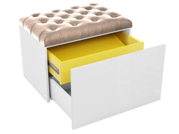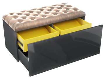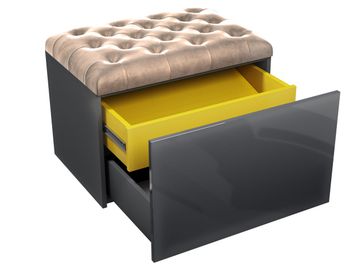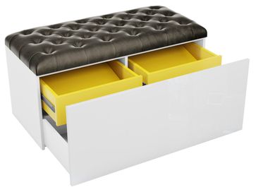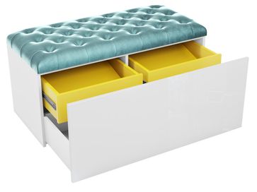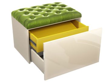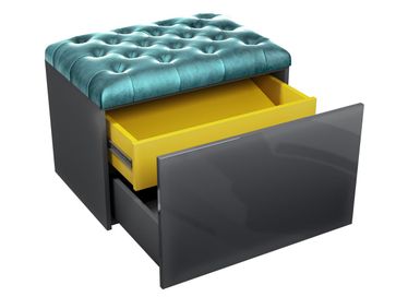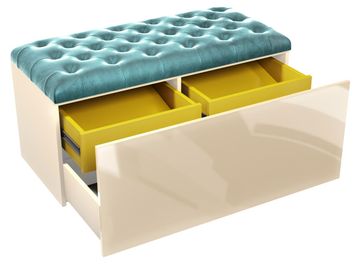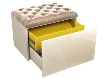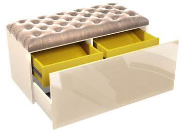 Характеристики: <br> Материал корпуса и фасада: ЛДСП 16 мм.<br> Покрытие фасада: высокий глянец.<br> Материал обивки сиденья: велюр.<br> Тип направляющих внутреннего ящика: шариковые без доводчика полного движения.<br> Тип направляющих лицевого ящика: скрытые полного выдвижения с доводчиком и амортизатором с 3D-регулировкой.<br> Максимальная нагрузка: 120 кг.<br> None Страна производства: Россия