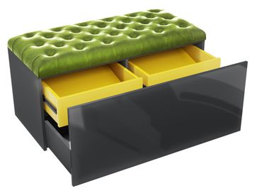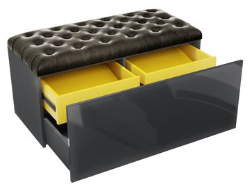 Стильная обувница Графтон оснащена двумя выдвижными ящиками, которые позволят аккуратно разместить повседневную обувь. Отсутствие внешней фурнитуры создает безопасную обстановку, а также придает модели более лаконичный вид. Мягкое сиденье, декорированное каретной стяжкой, обеспечит дополнительный комфорт при эксплуатации изделия.<br>
