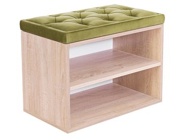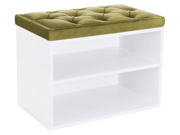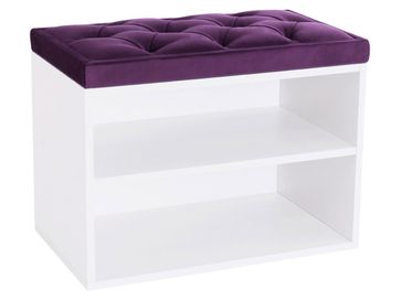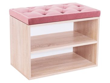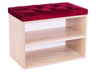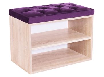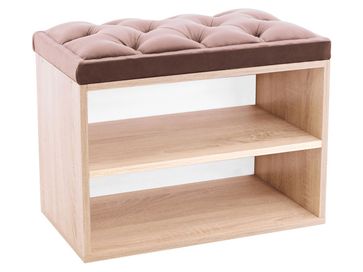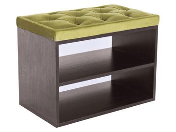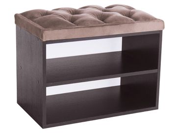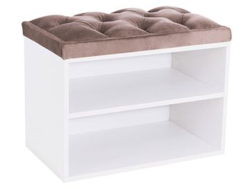 В корпусе расположены две открытые полочки для обуви. Обувница дополнена мягким сиденьем с каретной стяжкой. Обивка из микровелюра обладает повышенной износостойкостью и выдерживает до 60 тысяч циклов истирания.<br>