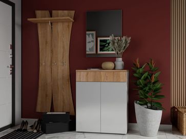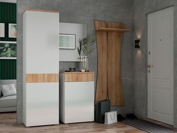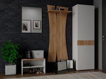 Характеристики: <br> Материал основания: ЛДСП 16 мм.<br> Материал полочки: ЛДСП 25 мм.<br> Материал крючков: металл.<br> Количество крючков: три штуки.<br> Тип штанги: евроштанга.<br> Максимальная нагрузка на полку и крючок: 5 кг.<br> Ориентация сборки: только так, как показано на изображении.<br> None Страна производства: Россия