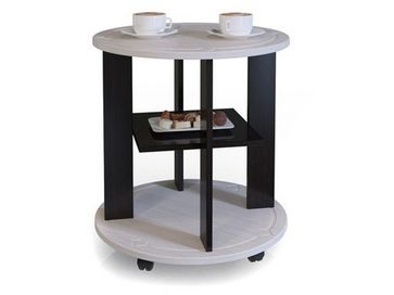 <br> Столик представляет собой круглую столешницу и две полочки для необходимых в сервировке предметов: чашек, журналов или столовых приборов.<br> Материал изготовления столика — МДФ. None Страна производства: Россия