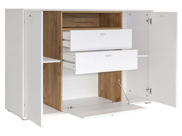 Организовать рациональное хранение вещей поможет широкий комод Бель. Комбинированное наполнение предусматривает выдвижные ящики и закрытые отделения для размещения белья, постельных принадлежностей и сложенных вещей.<br>