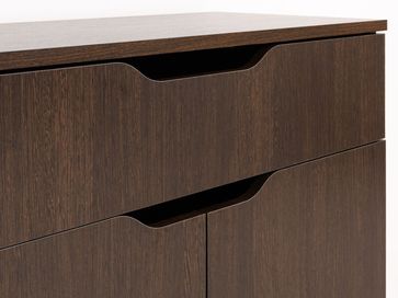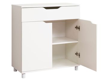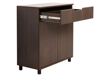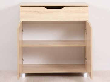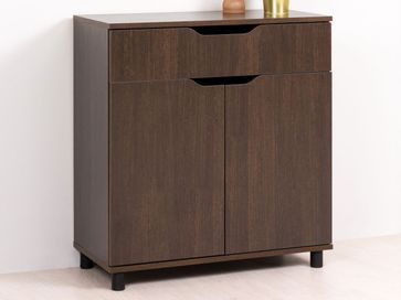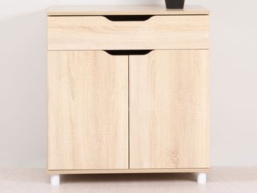 Комод Рокс станет функциональным решением для современной гостиной, спальни или прихожей. Отделение за распашными дверцами подойдет для хранения одежды и постельных принадлежностей, а в выдвижном ящике удобно хранить полезные мелочи. Роль ручек выполняют декоративные вырезы на фасадах. Регулируемые опоры обеспечат устойчивость на неровной поверхности.<br>