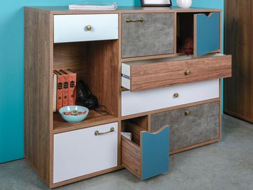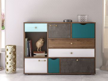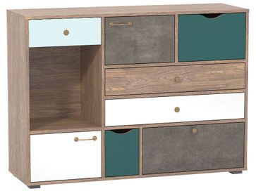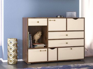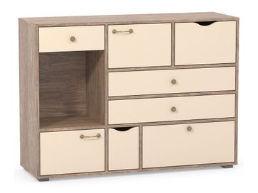 Стильный и вместительный комод Вайс-4 добавит в интерьер функциональности. Модель оснащена четырьмя выдвижными ящиками, четырьмя отделениями за распашными дверками и одной открытой нишей. Комод дополнен оригинальной фурнитурой «под старину».<br>