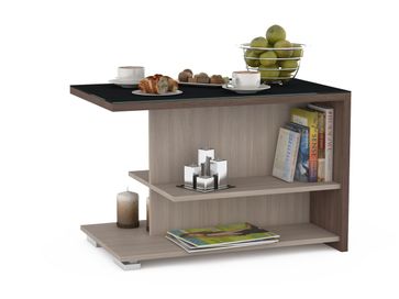 Журнальный столик Мишель 2071 станет незаменимым предметом мебели в вашей гостиной комнате. Модель выполнена в цвете натурального дерева, благодаря чему наполнит интерьер уютной атмосферой.<br> Корпус изделия произведен из ЛДСП толщиной 16 и 22 мм. Столешница дополнена черным крашенным стеклом, толщина которого составляет 4 мм.<br> Модель имеет четыре эргономичных полочки, на которых можно с удобством разместить журналы, книги, аксессуары или необходимую атрибутику для чайной церемонии.<br> Опоры столика оснащены специальными накладками, это убережет напольное покрытие от царапин и других повреждений.<br> None Страна производства: Россия