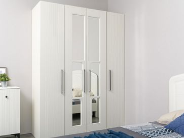 Распашной шкаф Валенсия привлекает внимание необычным дизайном зеркальных вставок и ажурной фрезеровкой. Дверцы с доводчиками закрываются плавно и бесшумно, а универсальное оснащение с просторной нишей и двумя вместительными полками отлично подходит для хранения повседневной одежды.<br>
