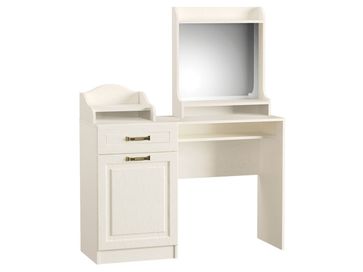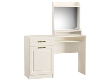 Стандартная комплектация туалетного столика Ливерпуль представлена вместительной тумбой с выдвижным ящиком для аккуратного размещения средств по уходу. В ящике установлены шариковые направляющие, которые обеспечивают полное выдвижение и тихий ход. Также модель можно дополнить классическим зеркалом и/или подставкой для парфюмерии и аксессуаров.<br> None Страна производства: Россия