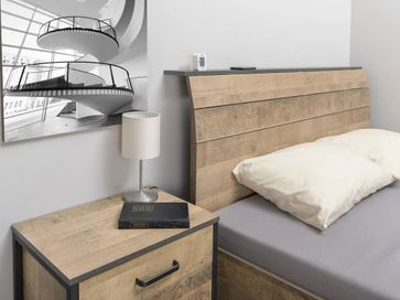 Кровать с подъемным механизмом Трувор ПМ — это гармоничное сочетание теплой древесной текстуры и контрастных металлических элементов. Такой дизайн подчеркнет индустриальный стиль комнаты и одновременно наполнит ее уютом. Модель дополнена высоким изголовьем, верхнюю планку которого можно использовать в качестве полки.<br>