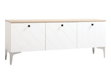 ТВ-тумба Альберо с оригинальным оформлением станет не только полезным, но и стильным предметом интерьера. Рельефные линии на фасадах обладают бархатистой, приятной на ощупь поверхностью. Дверки универсальны в навешивании, поэтому их можно разместить в любом порядке. Петли оснащены доводчиками, которые обеспечивают бесшумное открывание и закрывание.<br>