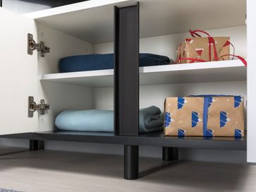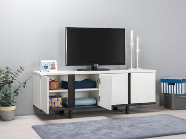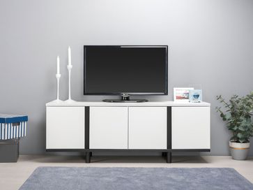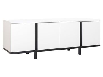 ТВ-тумба Квадро — это оригинальный дизайн, который гармонично сочетает белоснежные фасады и черные вставки. Модель станет функциональным решением для меблировки комнаты, подарив не только зону для размещения монитора практически любой диагонали, но и полноценную систему хранения. Регулируемые опоры компенсируют неровности напольного покрытия.<br>