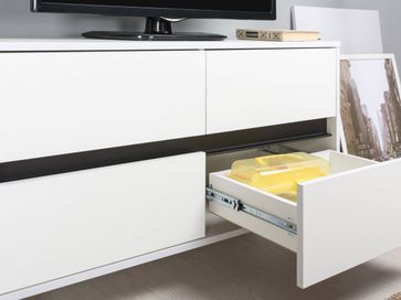 Характеристики: <br> Материал: ЛДСП 16 мм.<br> Тип направляющих: шариковые полного выдвижения.<br> Механизм открывания: за верхнюю и нижнюю часть фасада.<br> Максимальная нагрузка на ящик: 3 кг.<br> None Страна производства: Россия
