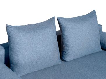 Нагрузка на одно спальное место — 120 кг. Наполнение — синтепон и пенополиуретан.<br> В комплект включены две большие подушки и две подушки-валика в качестве подлокотников.<br> Обращаем ваше внимание, что подушки изначально спрятаны на дне дивана, по бокам (параллельно подлокотникам). None Страна производства: Россия