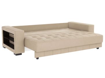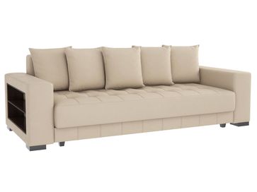 Прямой диван Классик с глубоким посадочным местом — отличное решение для оформления интерьера в просторном помещении. Строгие линии дополнены декоративной стежкой и окантовкой, которые превращают диван в стильную модель с оригинальным оформлением.<br /> Широкие подлокотники оснащены удобными полочками для телефона, пульта или других полезных мелочей. В сложенном виде диван образует спальное место для одного человека, а благодаря надежному механизму легко превращается в двуспальную кровать с невысоким бортиком для защиты стены. Диван укомплектован приспинными подушками со съемными чехлами, которые позволяют регулировать глубину посадки.<br>