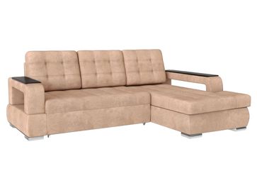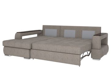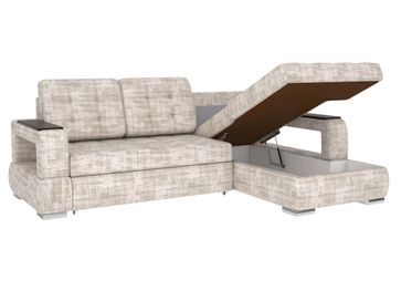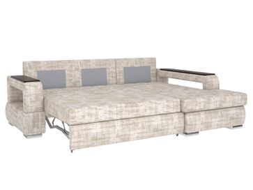 Угловой диван Виктория с оттоманкой прекрасно подойдет для оформления современного интерьера и позволит отдохнуть с максимальным комфортом. Широкие подлокотники делают модель очень удобной: накладки можно использовать в качестве столешниц, а в нишах — хранить пульт или книгу.<br> В сложенном виде диван образует ровное спальное место для одного человека, а за счет надежного механизма легко превращается в двуспальную кровать. Благодаря удлиненной форме одного из подлокотников создается дополнительный комфорт во время сна.<br>