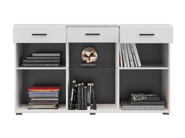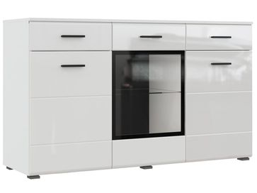 Комод Глосс — эффектная модель для хранения в гостиной. Белые глянцевые фасады создают в интерьере особую атмосферу и зрительно расширяют пространство. Внутреннее наполнение представлено выдвижными ящиками и вместительными отделениями разной высоты. Изюминка модели – стеклянный фасад с акцентным черным кантом. <br>