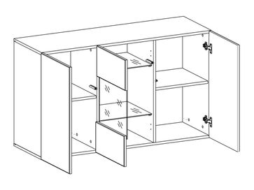 Комод Поинт станет центральным элементом современного интерьера. За тремя распашными дверцами достаточно места для хранения самых разных вещей и предметов — от белья и одежды до посуды и элементов декора. На просторной столешнице можно расставить книги, любимые фотографии, лампу, статуэтки и прочие мелочи.<br>