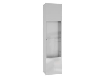 Характеристики: <br> Материал корпуса: ЛДСП 16 мм.<br> Материал фасада: МДФ в финиш-пленке ПВХ, стекло 4 мм.<br> Механизм открывания: петли с системой «push-to-open».<br> Тип крепления: скрытое.<br> Дверца навешивается на любую сторону.<br> Максимальная нагрузка на стеклянную полку: 3 кг.<br> Максимальная нагрузка на деревянную полку: 7 кг.<br>