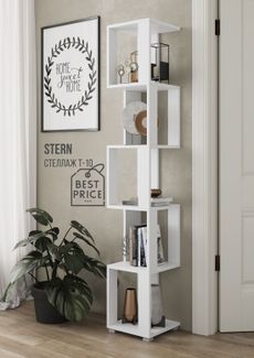 Стеллаж Штерн станет эффектным дополнением системы хранения в любом интерьере. Оригинальная конструкция не занимает много места, при этом позволяет красиво расставить книги, декор, комнатные цветы или детские игрушки. Открытые полки не загромождают пространство, поэтому модель отлично смотрится как в просторной, так и в небольшой по площади комнате.<br>