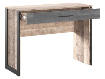 Туалетный столик Хуго оснащен компактной столешницей и удобным выдвижным ящиком для хранения косметики, аксессуаров и других личных вещей. Строгая геометрия и графичность линий подчеркивают индустриальный стиль модели и делают ее гармоничным дополнением современного интерьера.<br>