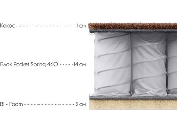 Пружинный матрас First SX 19 — самый жесткий в одноименной линейке базовых моделей. Это отличный вариант для дачи, съемной квартиры или гостевой комнаты. Пружинный блок Pocket Spring 460 обеспечивает правильное положение во сне, а натуральный наполнитель кокос придает матрасу необходимую жесткость. Упругий слой Bi-foam немного прогибается под нагрузкой, хорошо поддерживая всё тело.<br>