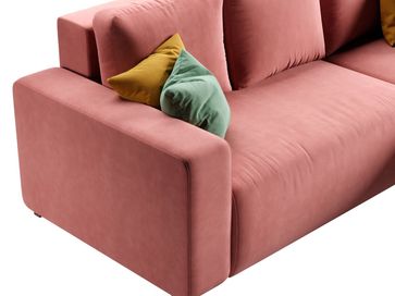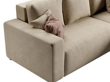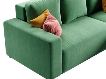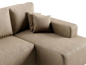 Угловой диван Пуэрто с широкими подлокотниками — комфортная и практичная модель. Мягкие объемные подушки заботятся об удобной посадке, а простой и надежный механизм без усилий превращает диван в полноценное спальное место. Благодаря плотному ворсу и специальной пропитке с поверхности легко удаляются любые пятна, загрязнения и шерсть домашних животных. Прочная и приятная на ощупь обивка рассчитана на долгий срок службы.<br>