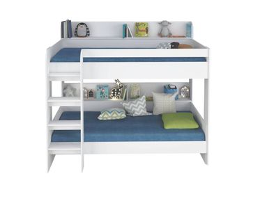 Двухъярусная кровать Полини Симпл 8 — отличный вариант меблировки комнаты для двоих детей. Модель предоставляет два полноценных спальных места, каждое из которых дополнено широкой полкой-стеллажом с задней стенкой, где найдется место любимым игрушкам, книгам и важным для ребенка мелочам.<br>