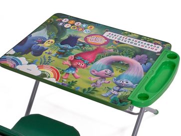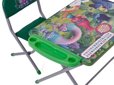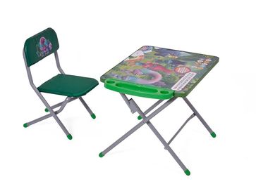 С ярким комплектом детской мебели Кидс-1 легко обустроить рабочее место для малыша 3–4 лет. Поверхность столешницы украшена развивающим рисунком с персонажами популярных мультфильмов и дополнена яркой кромкой.<br> Преимущества: <br> практичный — удобный мягкий стульчик и столик с подставкой для ног и отделением под карандаши;<br> познавательный рисунок на столешнице — помогает выучить алфавит, цифры, цвета и основные геометрические фигуры;<br> прост в уходе — обивка стула с водоотталкивающей структурой;<br> складные элементы — комплект прост в хранении, так как не занимает много места в сложенном виде.<br><br> Этот практичный комплект создан для веселого и комфортного времяпровождения малыша. Удобный стульчик с мягким сиденьем и столик с подставкой для ног и отделением под карандаши превратят в удовольствие любое занятие вашего ребенка.<br>