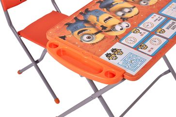 Красочный комплект детской мебели Кидс-3 поможет обустроить рабочее место для ребенка 5–6 лет. Яркий набор из столика и стульчика с иллюстрациями по мотивам популярных мультфильмов подарит хорошее настроение, а поверхность столешницы с развивающим рисунком поможет выучить арифметику и алфавит.<br> Преимущества: <br> практичный — удобный мягкий стульчик и столик с подставкой для ног и отделением под карандаши;<br> познавательный рисунок на столешнице — помогает выучить алфавит, цифры, цвета и основные геометрические фигуры;<br> прост в уходе — обивка стула с водоотталкивающей структурой;<br> складные элементы — комплект прост в хранении, так как не занимает много места в сложенном виде.<br><br> Этот набор превратит в удовольствие любое занятие. Удобный мягкий стульчик и столик с подставкой для ног и отделением под карандаши и мелочи сделают досуг ребёнка комфортным и веселым.<br>
