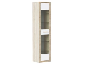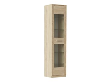 Стильный шкаф-витрина Элегия со стеклянными полочками преобразит любой интерьер. Фасадная рамка оформлена декоративной резьбой и образует собой «портал». Расставив в таком шкафу свою любимую коллекцию диковинных вещиц или старинных книг, вы сможете с гордостью демонстрировать ее семье и друзьям.<br> Характеристики: <br> Материал корпуса: ЛДСП<br> Материал фасада: ЛДСП, МДФ, стекло.<br>