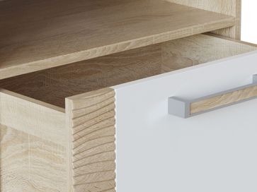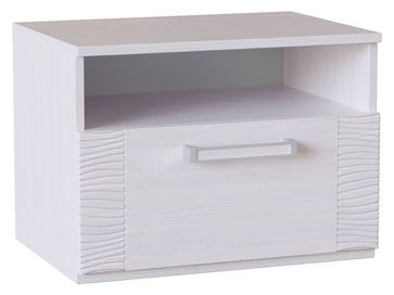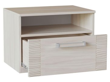 Прикроватная тумба Элегия идеально подойдет для оформления интерьера спальни. Ее элегантный дизайн в сочетании с современной фурнитурой в тон фасада придает оригинальности изделию.<br> Обратите внимание, тумба имеет выпил под плинтус. None Страна производства: Россия