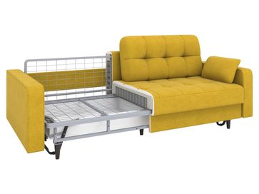Прямой диван Санфорд в современном дизайне станет центром притяжения в любом интерьере. Высокие приспинные подушки с двумя типами наполнителя позволяют удобно расположиться во время отдыха и при желании регулировать глубину посадки. Модель оснащена съемным чехлом, что упрощает уход за обивкой.<br /> Механизм трансформации не повреждает напольное покрытие и легко превращает диван в просторную кровать с комфортным спальным местом. Независимый пружинный блок создает условия для крепкого и здорового сна, а специальная спинка оберегает от соприкосновения со стеной. Постельные принадлежности отлично помещаются в просторный бельевой ящик. Благодаря высоким ножкам не возникает проблем с уборкой: под диваном без труда проезжает робот-пылесос.<br>