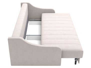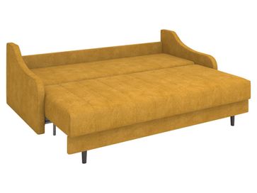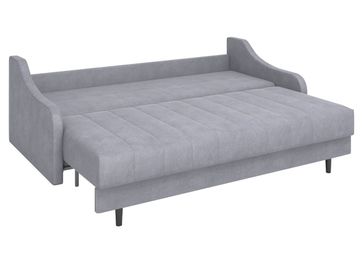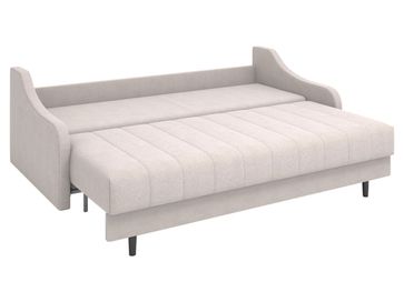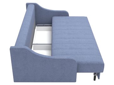 Прямой диван Трентон с фигурными подлокотниками и высокими ножками станет прекрасным дополнением гостиной или квартиры-студии. Спинка обита лицевой тканью, поэтому модель можно установить не только вдоль стены, но и в любой части комнаты. Высокие опоры визуально облегчают конструкцию и позволяют свободно проезжать роботу-пылесосу.<br /> Модель оснащена раскладным механизмом, который быстро трансформирует диван в комфортную зону для сна с высоким ортопедическим матрасом, при этом все постельные принадлежности удобно помещаются в просторном бельевом коробе. Съемный чехол облегчает уход за диваном и позволяет при необходимости поменять его цвет.<br>