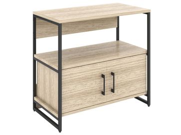 Стеллаж Матисс будет прекрасно смотреться в современном интерьере за счет актуального сочетания металла и дерева. Комбинация открытых и закрытых секций обеспечит оптимальное место для хранения каждой вещи, а эстетичная отделка задней панели позволит установить модель не только у стены, но и в центре комнаты.<br>