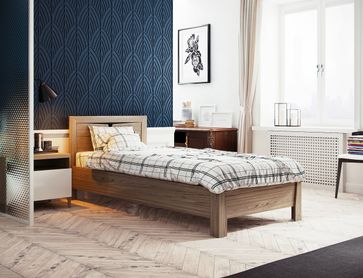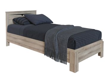 Односпальная кровать Гарда выполнена в современном стиле и понравится как взрослым, так и подросткам. Наличие ножек позволит без усилий проводить уборку под кроватью. Основание представляет собой деревянные ламели, закрепленные на каркасе, и служит для улучшения анатомических свойств матраса.<br> Габариты: <br> Высота ниши под матрас: 6 см.<br> Высота боковой части: 22 см.<br> Высота изголовья от основания: 51 см.<br> Высота ножек: 13 см.<br>
