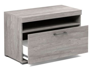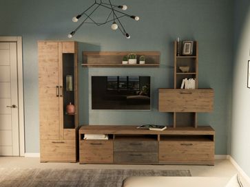 Преимущества: <br> практичное наполнение — вместительный выдвижной ящик, открытая ниша над ним;<br> шариковые направляющие — позволяют ящику полностью выдвигаться, а также имеют плавный и бесшумный ход;<br> регулируемые опоры — компенсируют неровности пола;<br> стильный дизайн — ТВ-тумба выполнена в текстуре, имитирующей натуральное дерево;<br> модульная серия — модель будет гармонично сочетаться с элементами серии Денвер.<br>