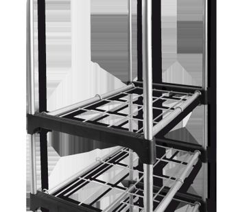 Расстояние между средними полочками составляет 215 мм, между нижними — 296 мм. Полки можно устанавливать в любой последовательности.<br /> Размер нижней полки — 600 х 305 мм.<br>