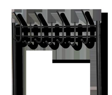 Сверху расположились крючки для одежды, а снизу — полка для обуви.<br /> Расстояние между крючками составляет 100 мм.<br /> Максимальная нагрузка на каждый составляет 2,5 кг, полка рассчитана на нагрузку до 10 кг.<br>
