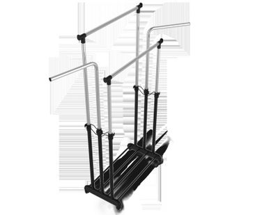 Конструкцией предусмотрено два рейлинга для вешалок. Ширина регулируется в пределах от 860 мм до 1340 мм. Высота вешалки регулируется с помощью телескопическопической системы в пределах от 890 мм до 1660 мм.<br>
