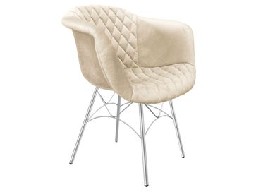 Стул Гурз станет комфортабельным элементом обеденной группы благодаря эргономичной спинке, которая имеет округлые очертания и плавно переходит в подлокотники. Обивка из микровелюра приятна на ощупь, а за счет своих структурных особенностей скроет зацепки от домашних питомцев. Металлический каркас с дугообразными перекладинами обеспечит надежность конструкции, а подпятники защитят напольное покрытие.<br>