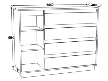 Широкий комод Вирджиния удачно дополнит интерьер современной спальни или гостиной. Вместительные ящики и ниши за распашной дверцей позволят разместить большое количество вещей и одежды. Отсутствие внешней фурнитуры делает модель травмобезопасной.<br>