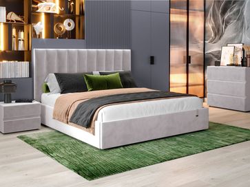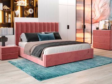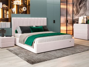 Уютная кровать с подъемным механизмом Ингрид ПМ станет центром притяжения в любом интерьере. Мягкая обивка и высокое изголовье с вертикальными строчками делают модель очень удобной и комфортной. Основание с подъемным механизмом открывает доступ ко вместительному коробу для белья, который значительно расширяет систему хранения.<br>